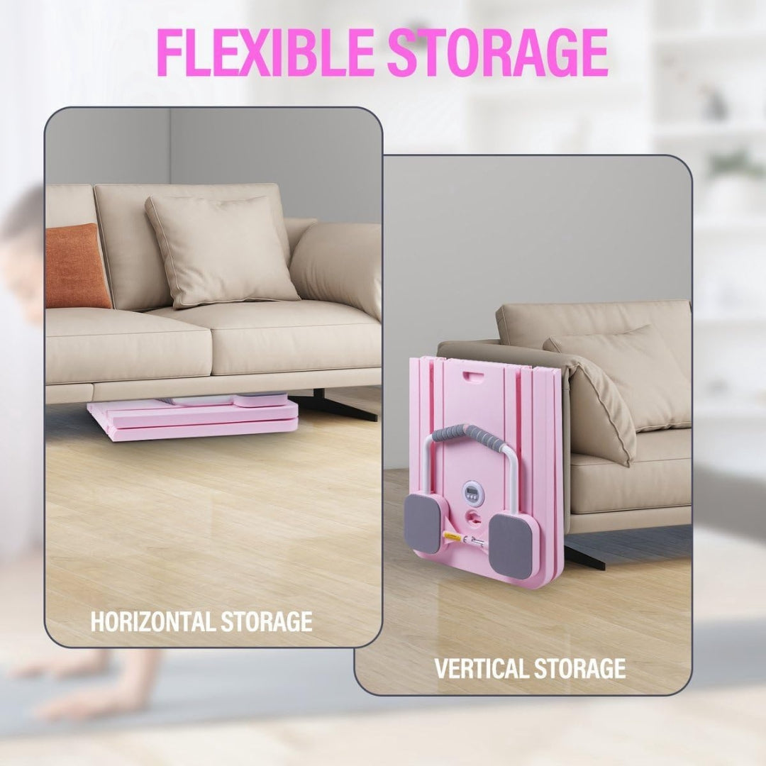 Very little. The board is foldable and compact, making it perfect for apartments or small home gyms. It can easily slide under a bed or into a closet.